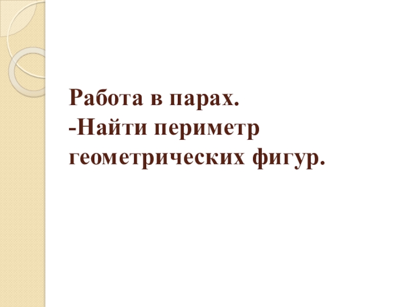 Слайд 13Работа в парах. -Найти периметр геометрических фигур.