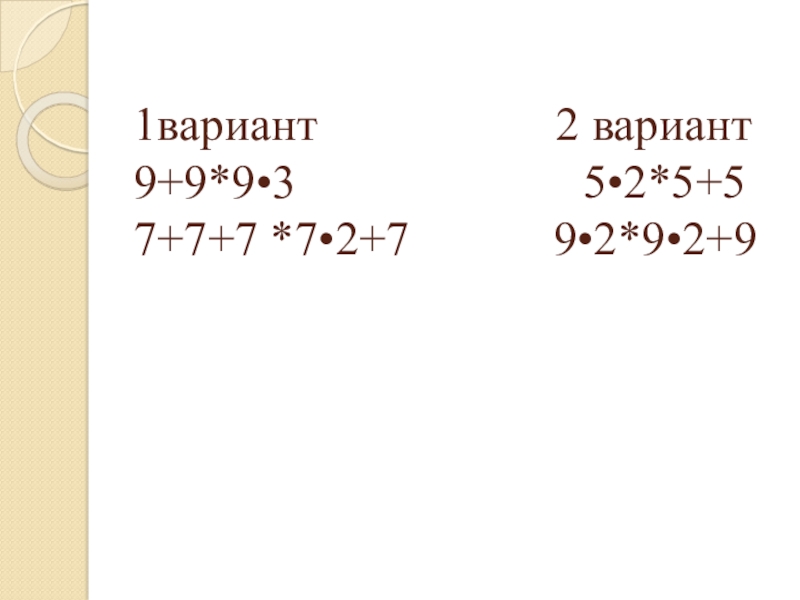 вариант 9+9*9•3 5•2*5+5 7+7+7 *7•2+7 9•2*9•2+9