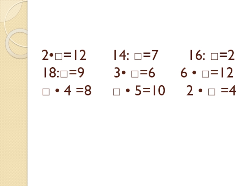 2•□=12   14: □=7    16: □=2 18:□=9    3• □=6