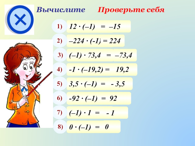 При умножении числа на (–1) получаем число, ему противоположное.