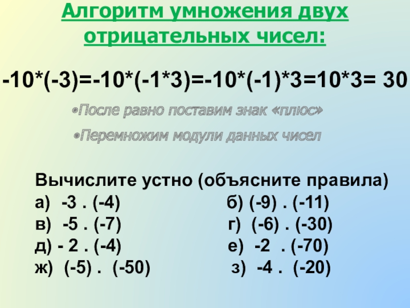 Алгоритм умножения чисел с разными знаками: