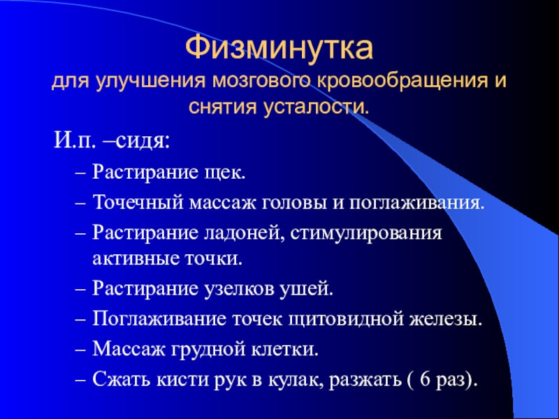 для улучшения мозгового кровообращения и снятия усталости.