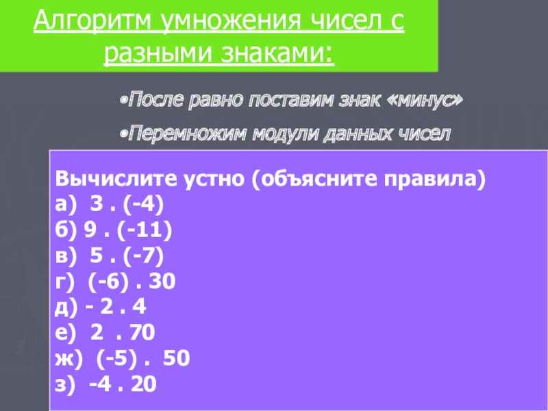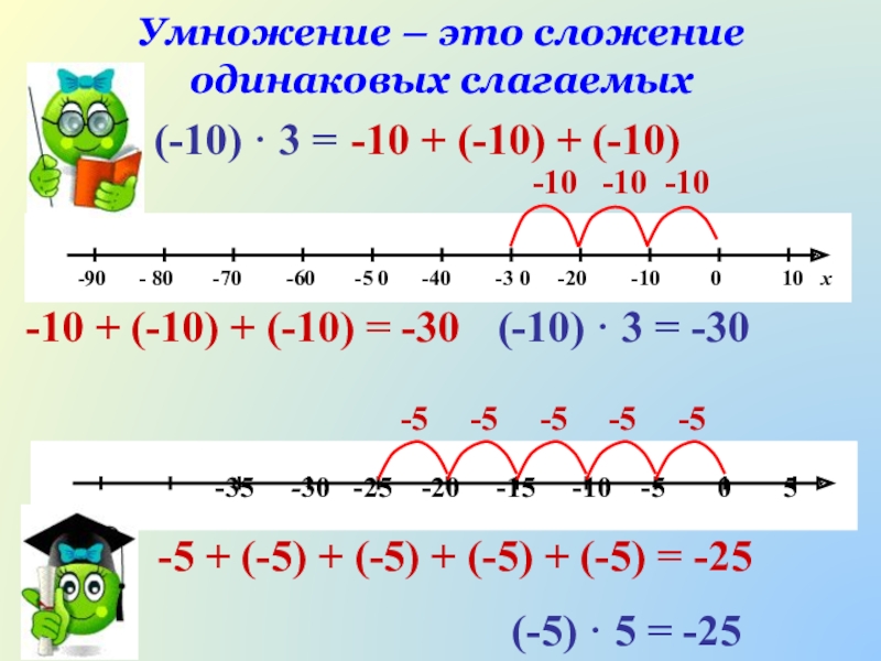 Слайд 1Умножение положительных и отрицательных чисел