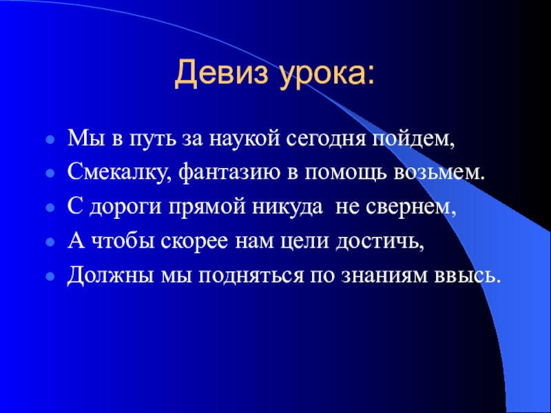 Слайд 3Девиз урока: