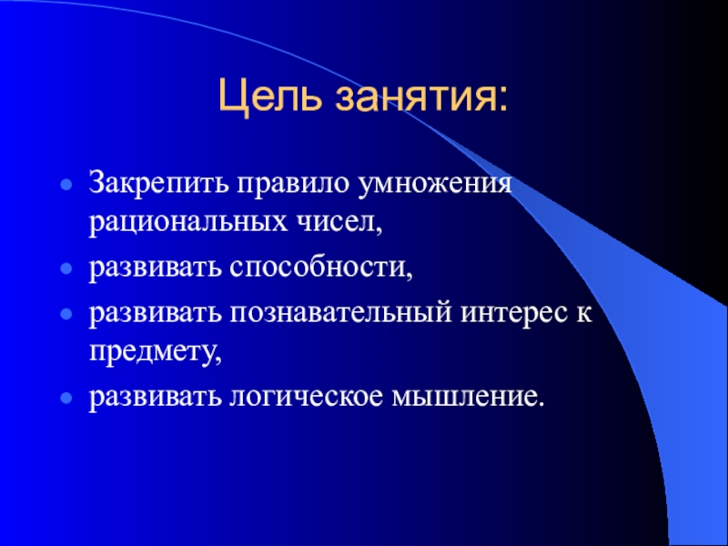 Закрепить правило умножения рациональных чисел,