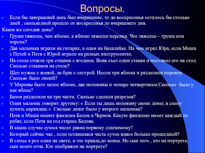 Логические вопросы