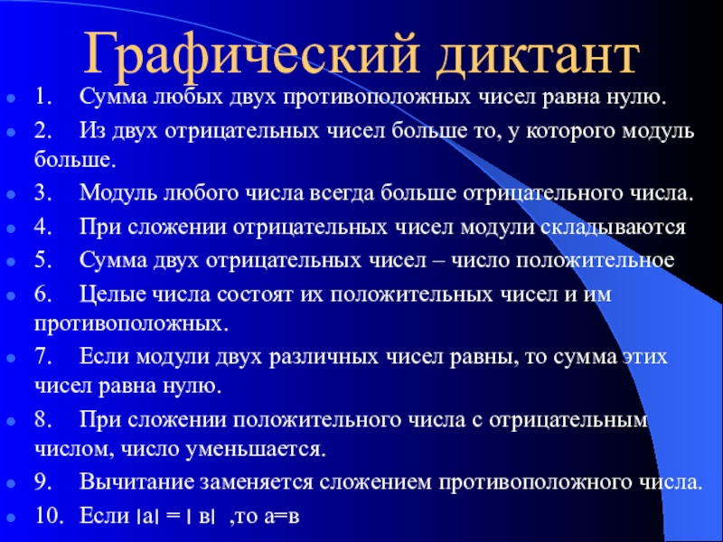 6. Целые числа состоят их положительных чисел и им противоположных.