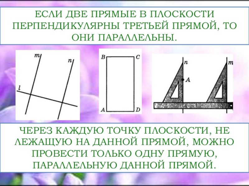 Слайд 5ЕСЛИ ДВЕ ПРЯМЫЕ В ПЛОСКОСТИ ПЕРПЕНДИКУЛЯРНЫ ТРЕТЬЕЙ ПРЯМОЙ, ТО ОНИ ПАРАЛЛЕЛЬНЫ.