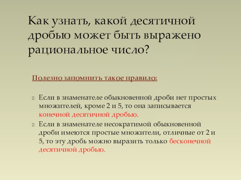 Как узнать, какой десятичной дробью может быть выражено рациональное число?