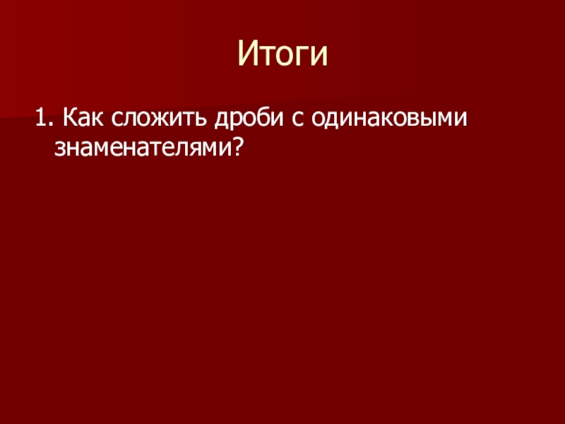 Итоги1. Как сложить дроби с одинаковыми знаменателями?