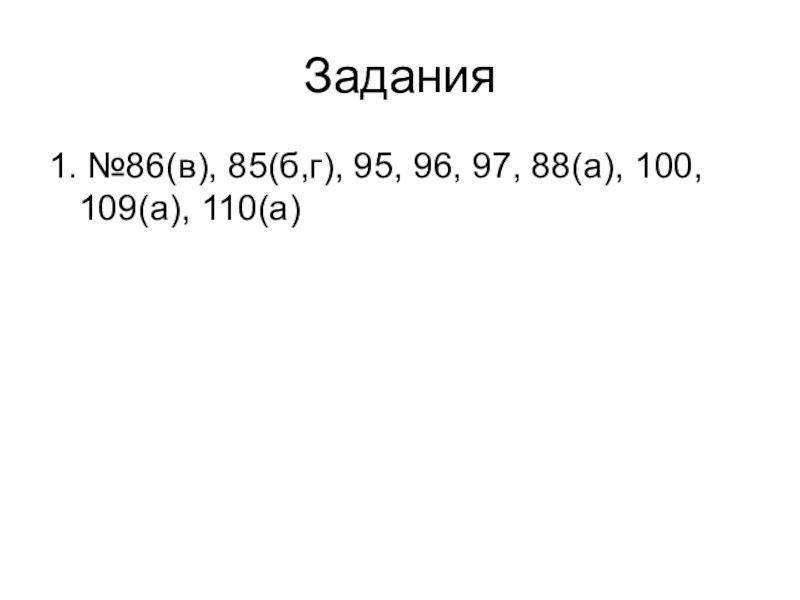 Задания1. №86(в), 85(б,г), 95, 96, 97, 88(а), 100, 109(а), 110(а)