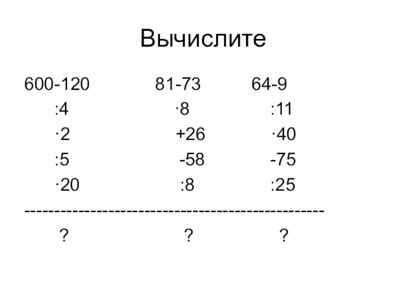 Вычислите600-120 81-73 64-9 :4 ·8 :11