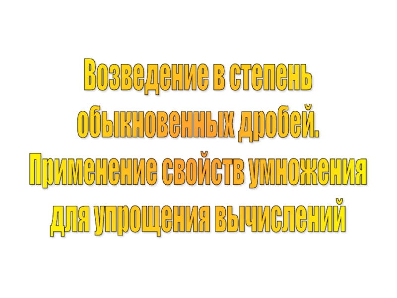 Слайд 1Возведение в степень обыкновенных дробей. Применение свойств умножения для упрощения вычислений