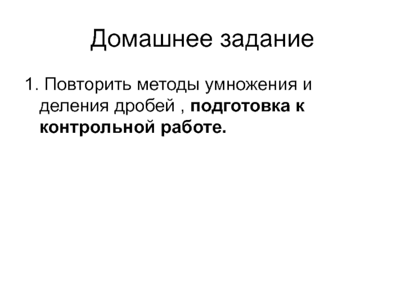 Домашнее задание1. Повторить методы умножения и деления дробей , подготовка к контрольной работе.