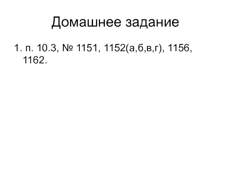 Домашнее задание1. п. 10.3, № 1151, 1152(а,б,в,г), 1156, 1162.