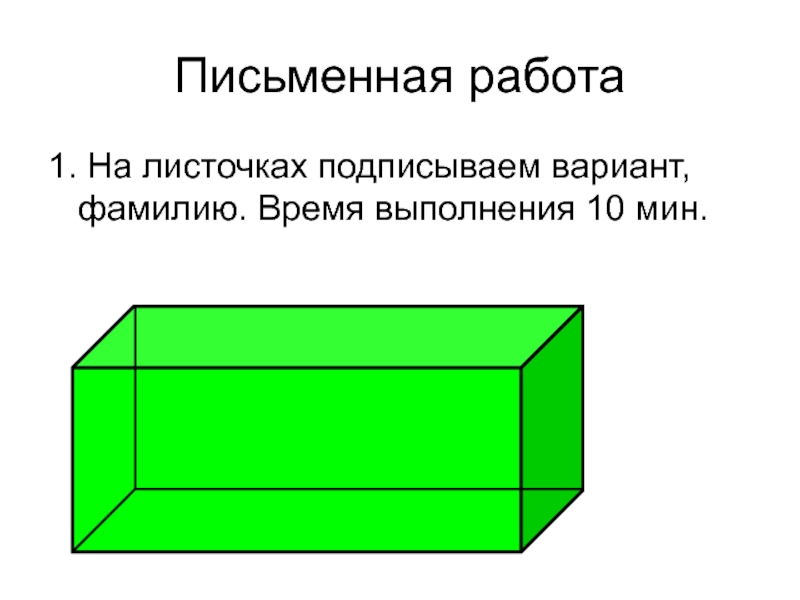 Письменная работа1. На листочках подписываем вариант, фамилию. Время выполнения 10 мин.