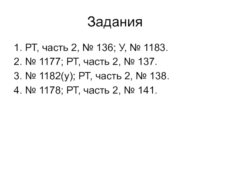 Задания1. РТ, часть 2, № 136; У, № 1183.2. № 1177; РТ, часть 2, № 137.3. №