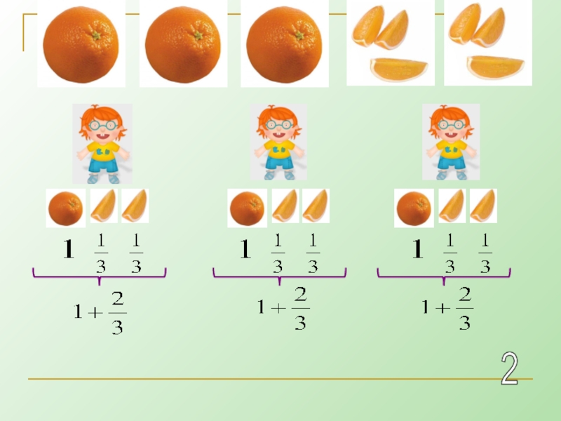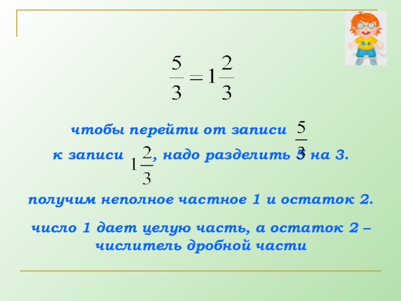 число 1 дает целую часть, а остаток 2 – числитель дробной части