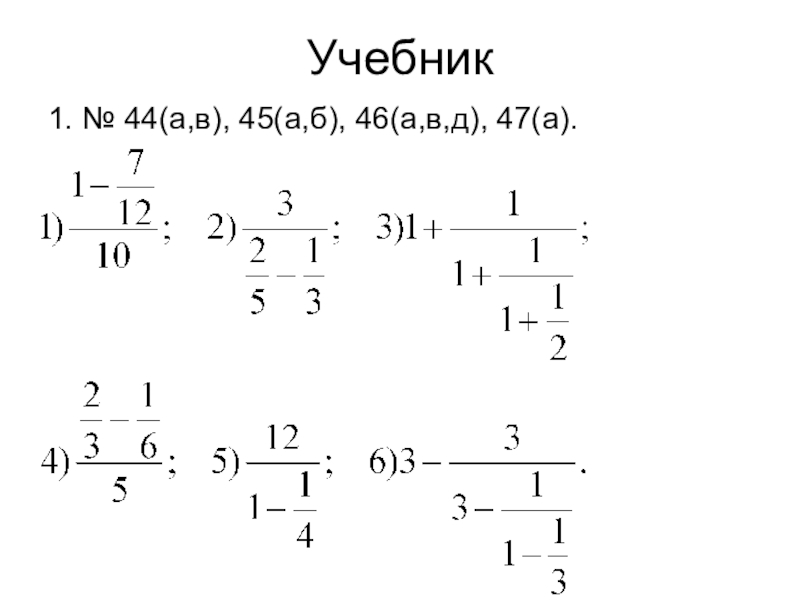 Учебник1. № 44(а,в), 45(а,б), 46(а,в,д), 47(а).