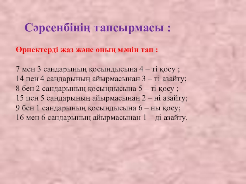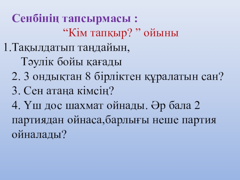 ДҮЙСЕНБІНІҢ ТАПСЫРМАСЫ :