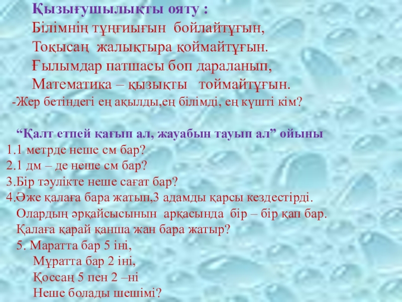 “Қалт етпей қағып ал, жауабын тауып ал” ойыны