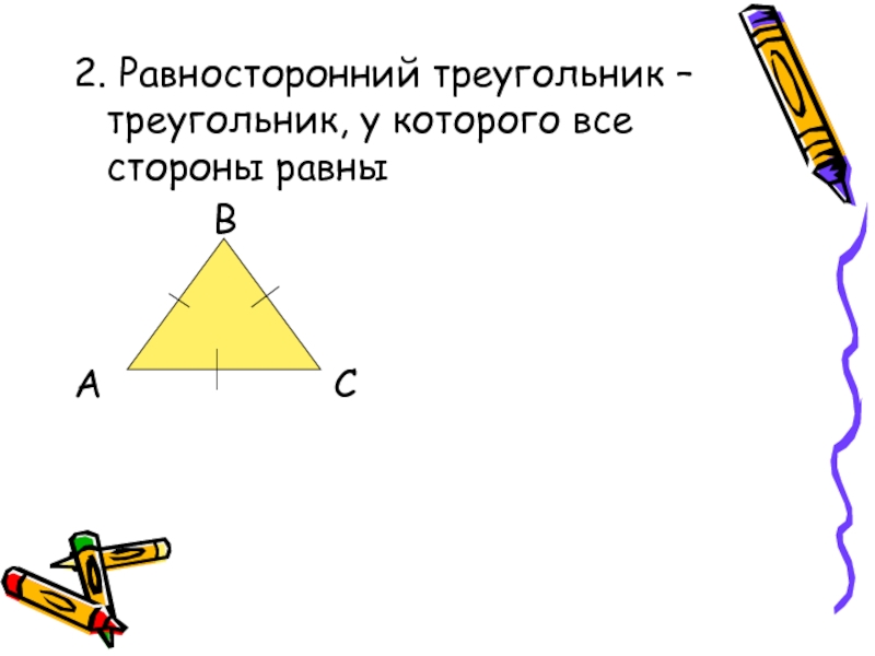 Слайд 32. Равносторонний треугольник – треугольник, у которого все стороны равны