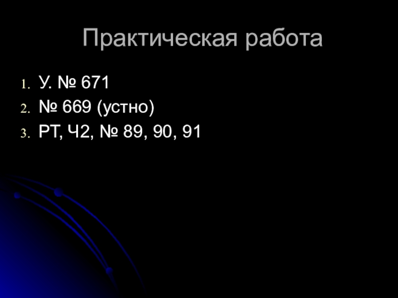 Практическая работаУ. № 671№ 669 (устно)РТ, Ч2, № 89, 90, 91