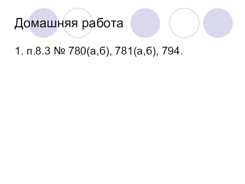 Домашняя работа1. п.8.3 № 780(а,б), 781(а,б), 794.
