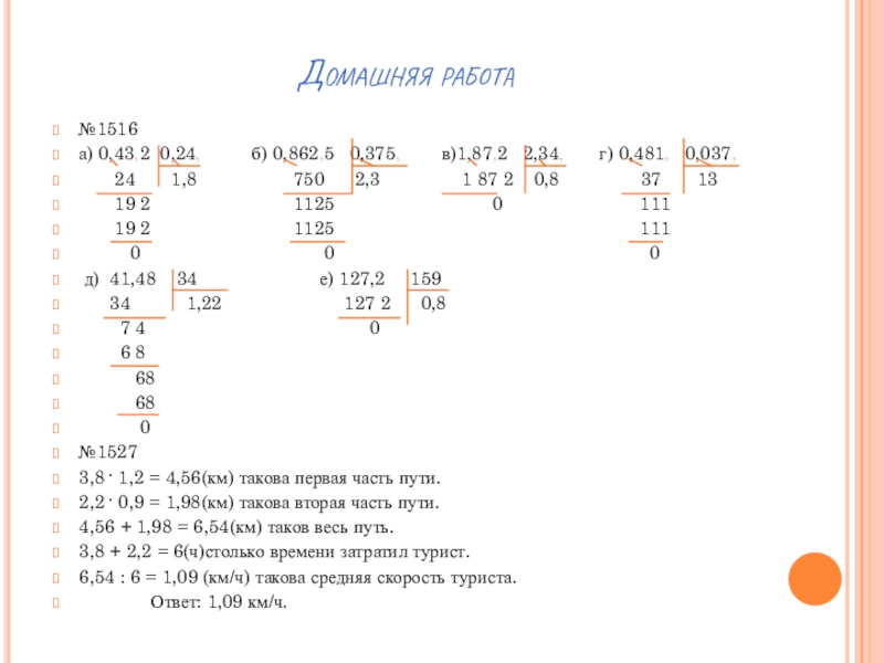 6,54 : 6 = 1,09 (км/ч) такова средняя скорость туриста.