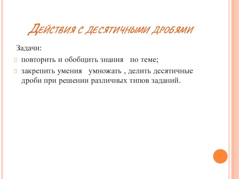 умения умножать , делить десятичные дроби при решении различных типов заданий.