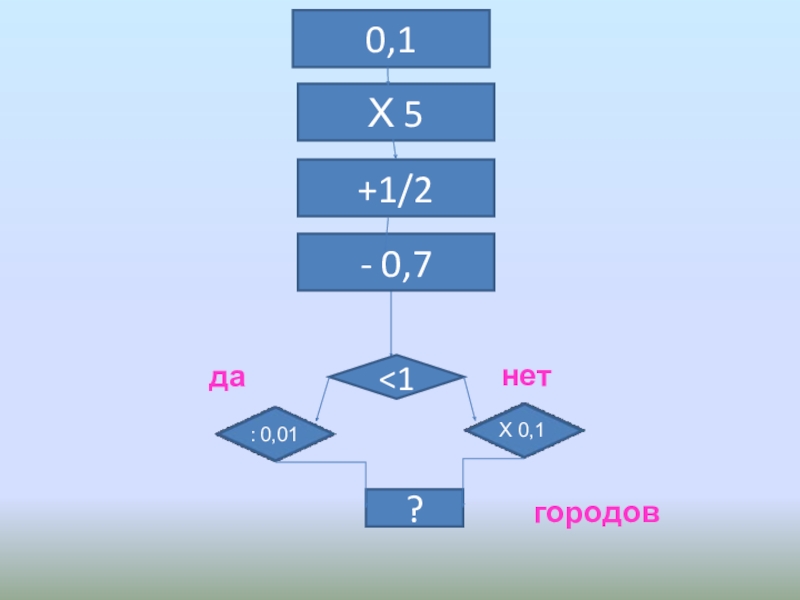 Слайд 5Вычислите с помощью блок схемы количество городов