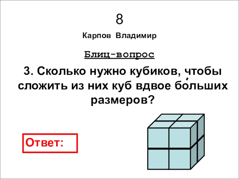 3. Сколько нужно кубиков, чтобы сложить из них куб вдвое больших размеров?