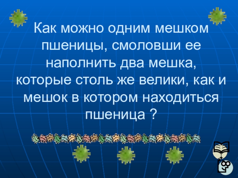 Слайд 72Как можно одним мешком пшеницы, смоловши ее наполнить два мешка,