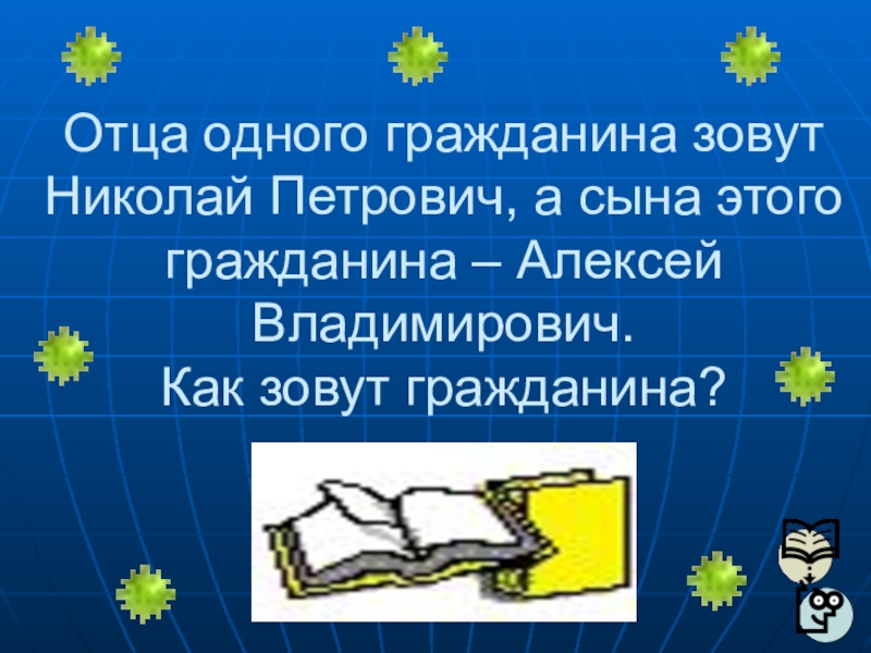 Слайд 64Отца одного гражданина зовут Николай Петрович, а сына этого гражданина –