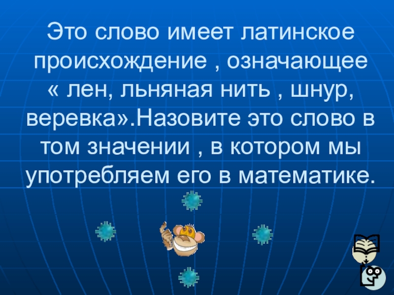, шнур, веревка».Назовите это слово в том значении , в котором мы употребляем его в математике.