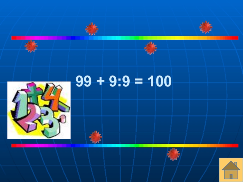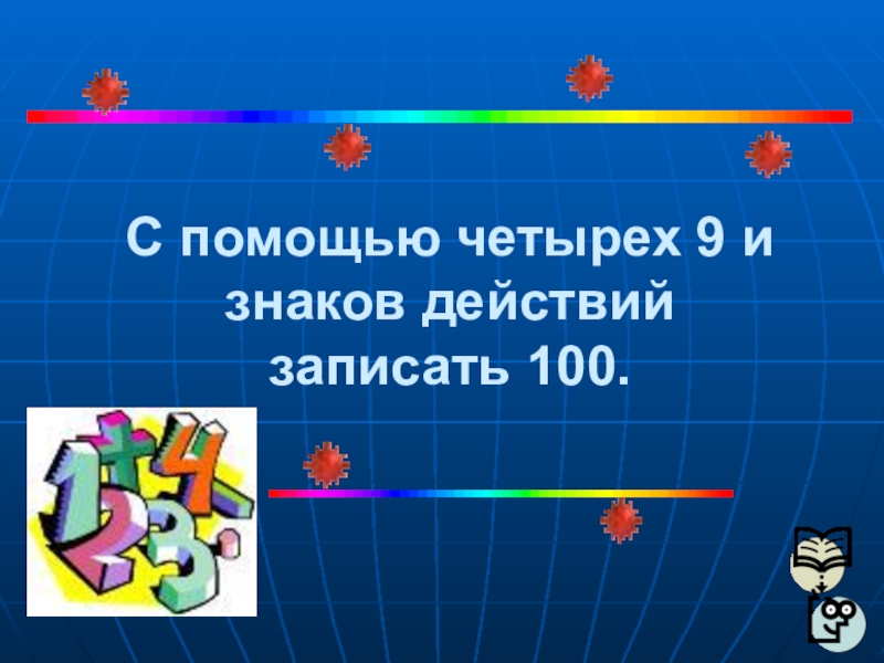 Слайд 32С помощью четырех 9 и знаков действий