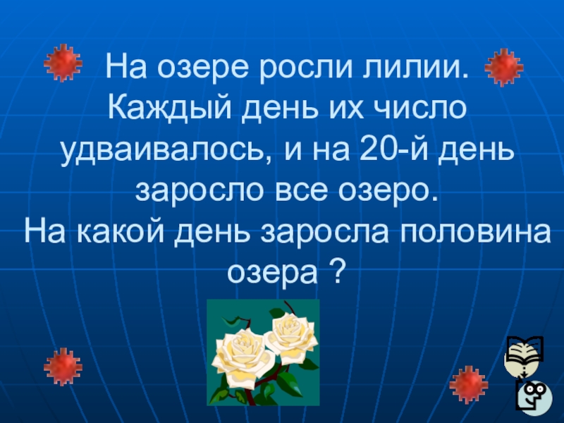 Каждый день их число удваивалось, и на 20-й