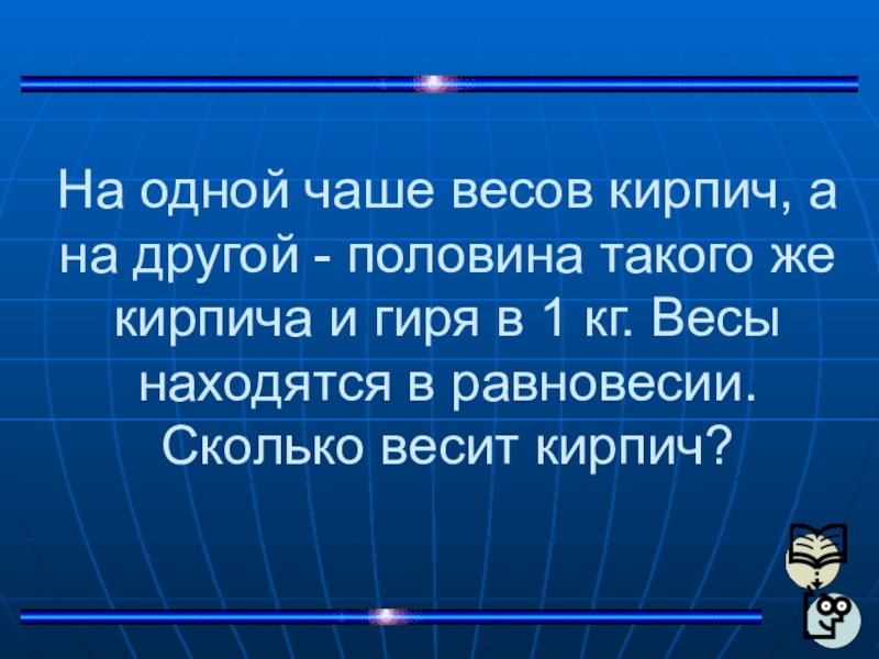 же кирпича и гиря в 1 кг. Весы находятся в равновесии. Сколько весит кирпич?