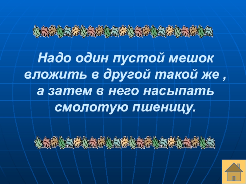 Слайд 73Надо один пустой мешок вложить в другой такой же ,
