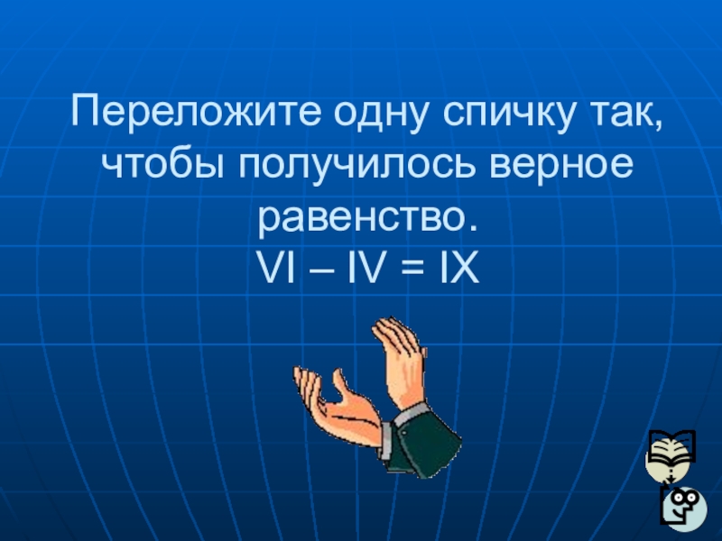 Слайд 46Переложите одну спичку так, чтобы получилось верное равенство.