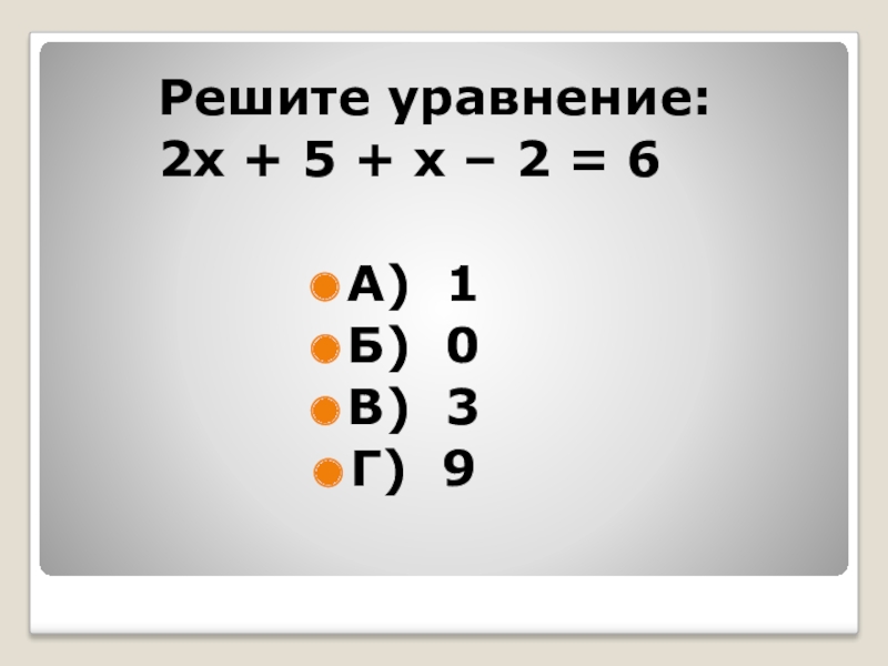 Решите уравнение:    2х + 5 + х – 2 =