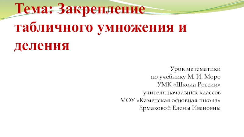 МОУ «Каменская основная школа»