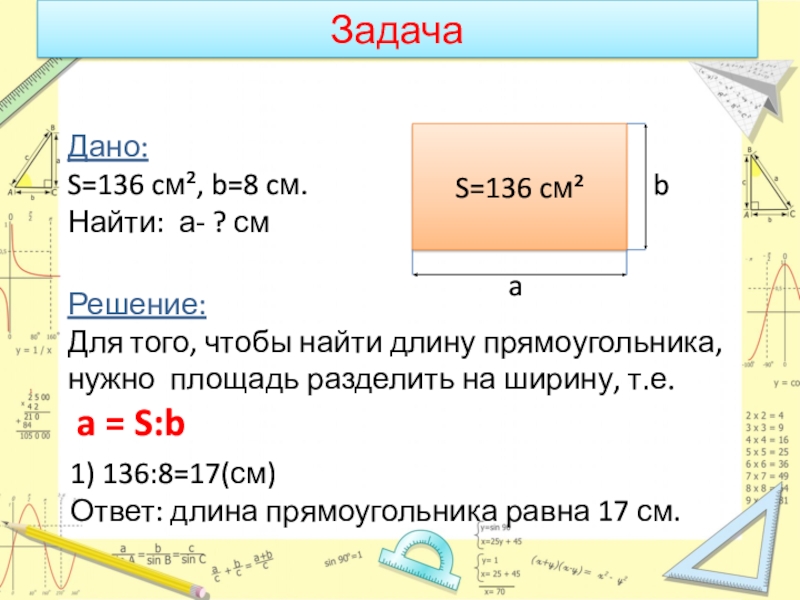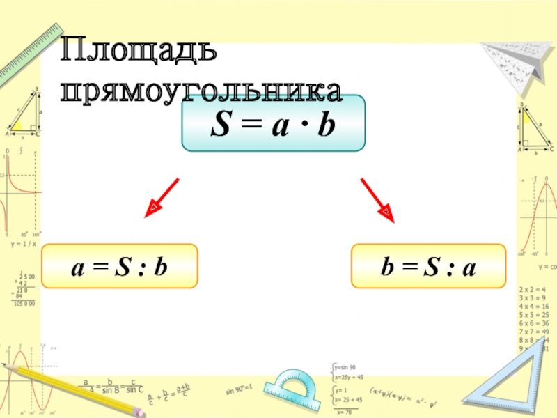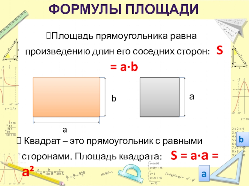 Квадрат – это прямоугольник с равными сторонами. Площадь квадрата: S = a·а = а²