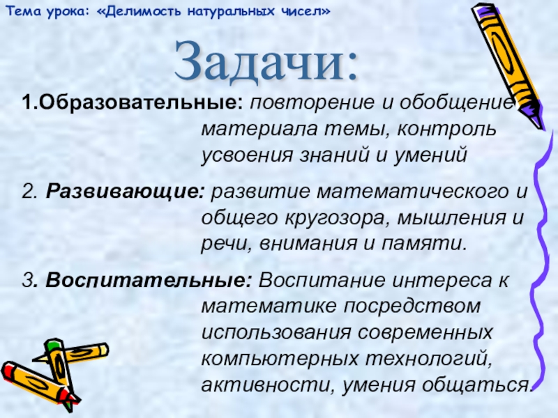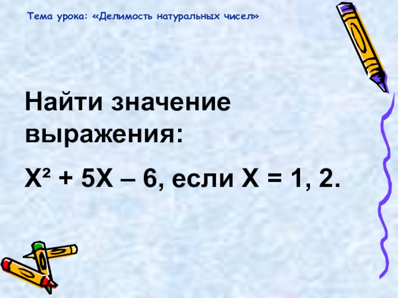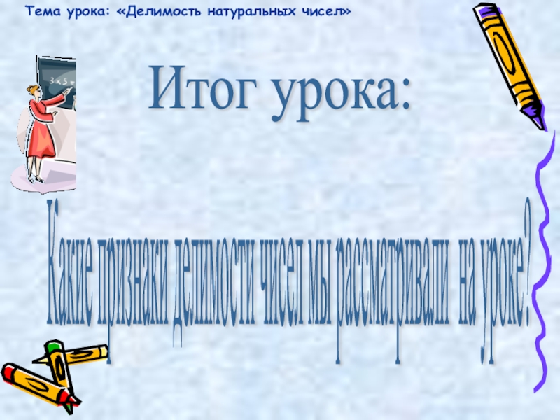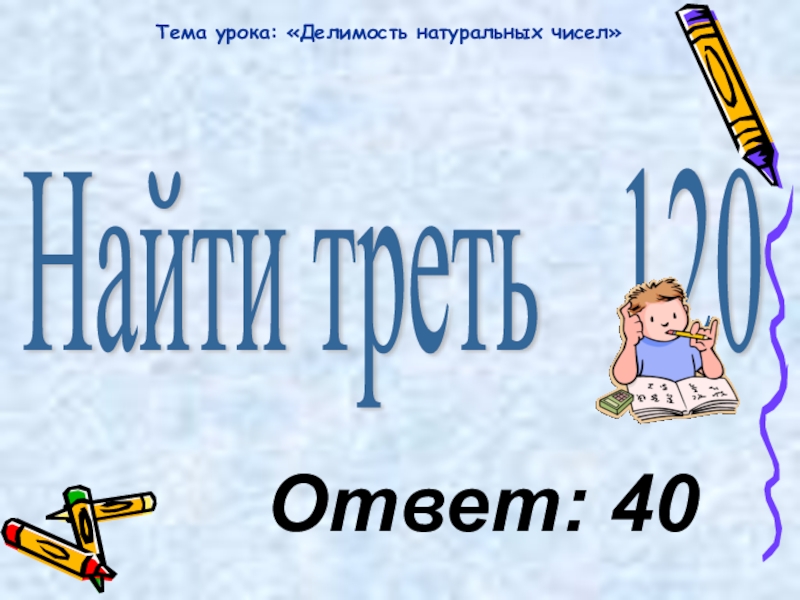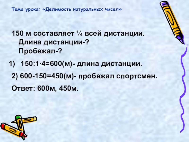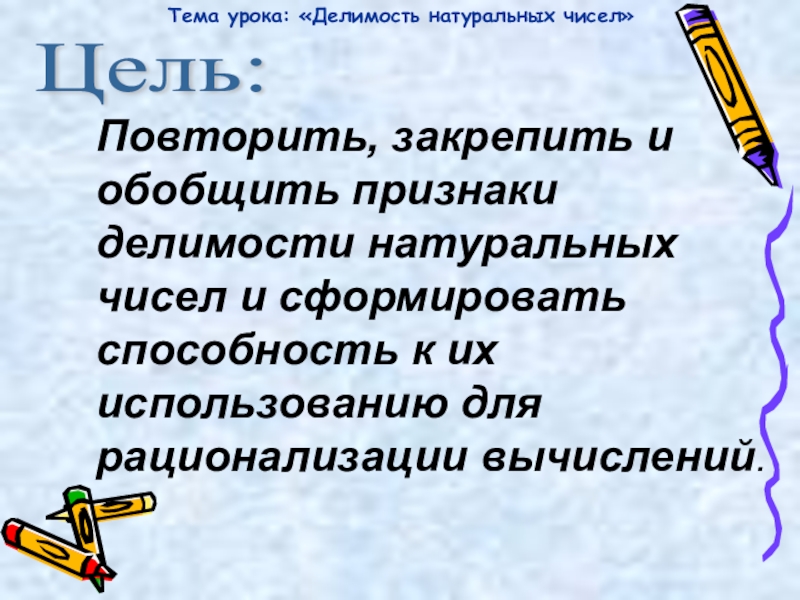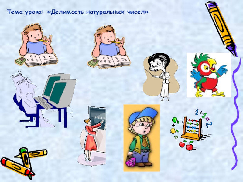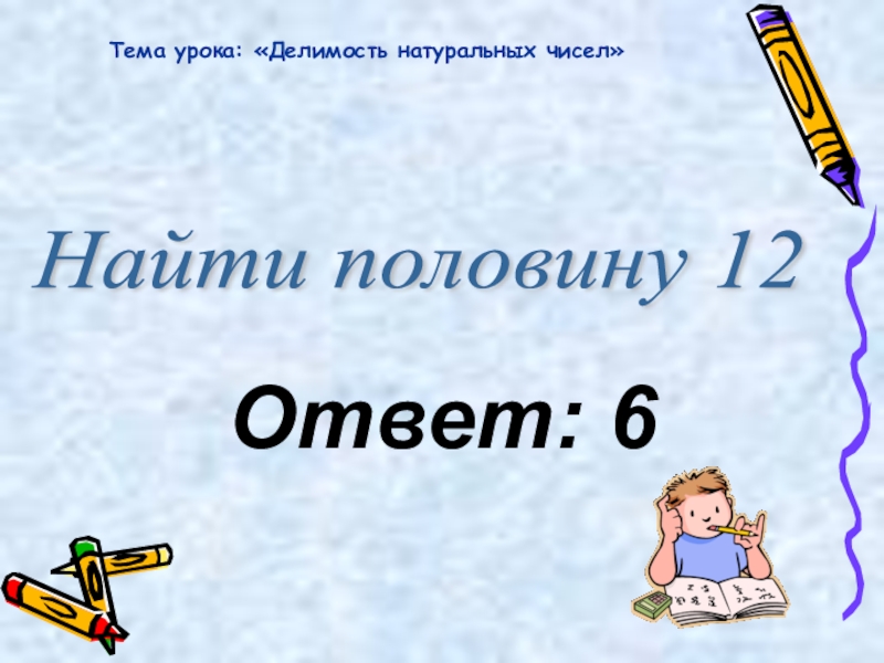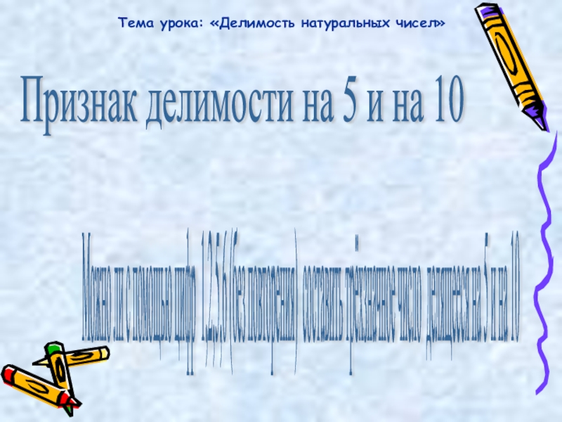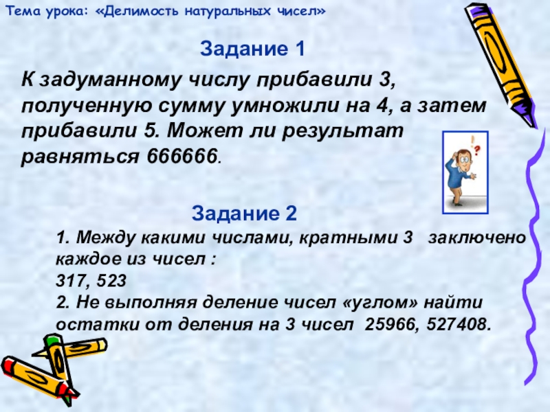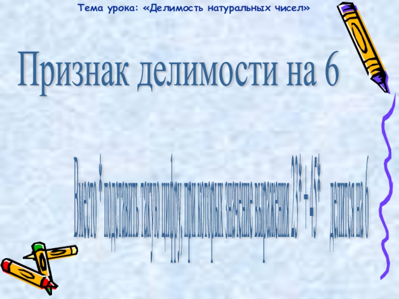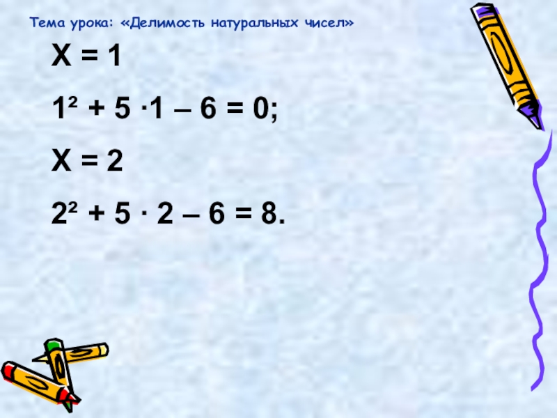 С 553 делится на 4 Е 3 является делителем 12756 М 347022 не кратно 9 В 11 является делителем 77777 Л 45921 делится на 2 и на 5 О 9999 кратно 9, но не кратно 3 А 647+35×831 не делится на 6 Н 272727-1818 делится на 9