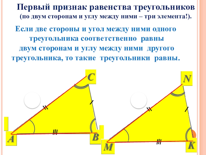 двум сторонам и углу между ними другого треугольника, то такие треугольники равны.