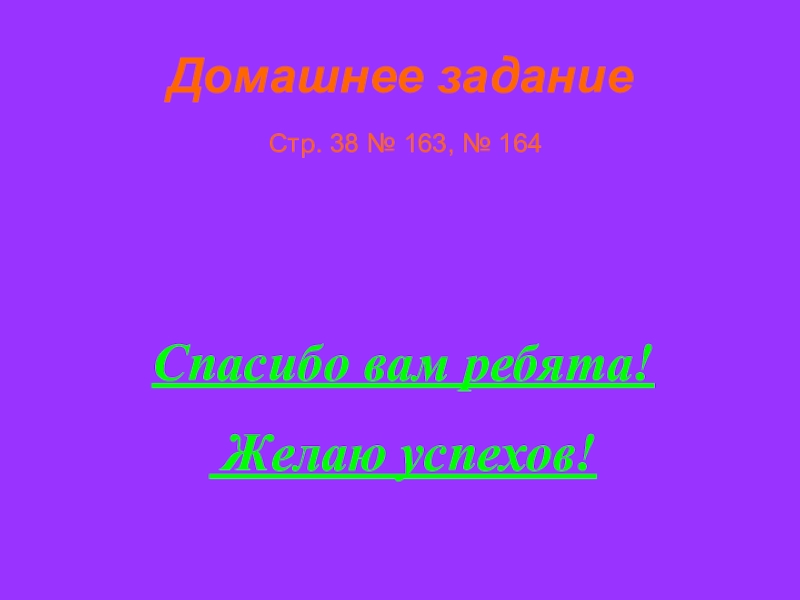 Домашнее заданиеСтр. 38 № 163, № 164Спасибо вам ребята! Желаю успехов!