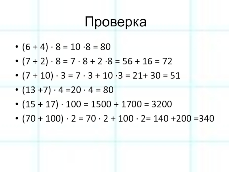 (7 + 10) ∙ 3 = (70 + 100) ∙ 2 =