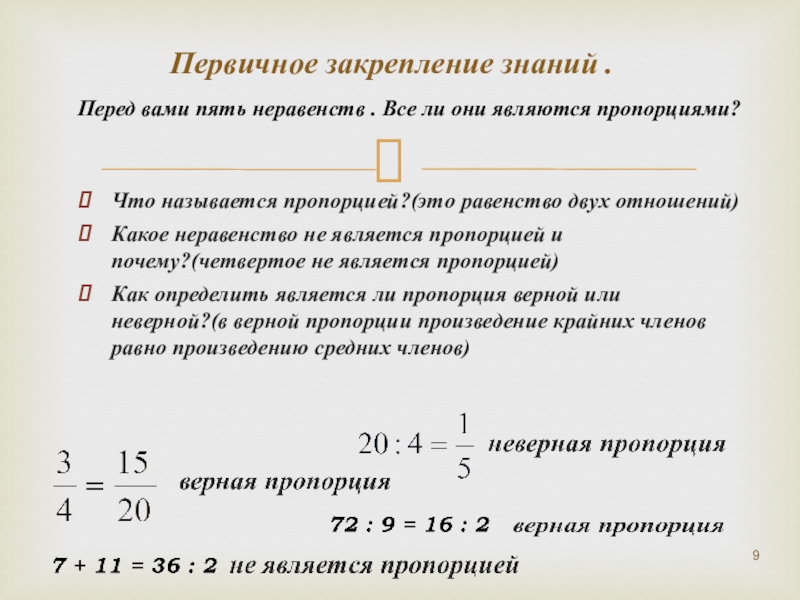 Как определить является ли пропорция верной или неверной?(в верной пропорции произведение крайних членов равно произведению средних членов)