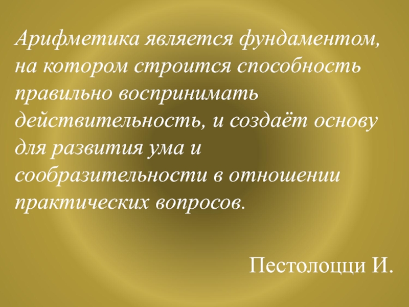 Слайд 2Арифметика является фундаментом, на котором строится способность правильно воспринимать действительность, и