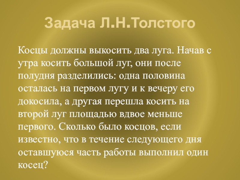 Косцы должны выкосить два луга. Начав с утра косить большой